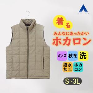 【洋服の青山】着るホカロン 中綿ベスト メンズ 秋冬用 ベージュ系 撥水加工 ダブルポケット カイロ 紳士服 アウター ビジネス カジュアル ビジカジ 50代