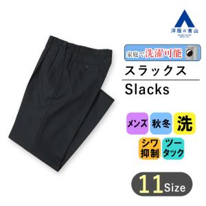 【洋服の青山】秋冬 ネイビー系 スタンダードスラックス【ツータック】REGAL メンズ ビジネス カジュアル ウォッシャブル シワ抑制 アジャスター おしゃれ