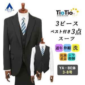 【洋服の青山】洗える 3ピース スーツ メンズ スリム 秋冬春夏 ブラック 黒 灰色 織柄 無地 スリーピース ベスト付き 2ボタン 背抜き ワンタック ストレッチ