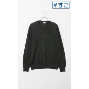 【洋服の青山】毛玉になりにくい ウール100 Vネックセーター メンズ 秋冬 チャコールグレー 無地 大きいサイズ 洗える 静電気防止 保温 暖かい シワになりにくい