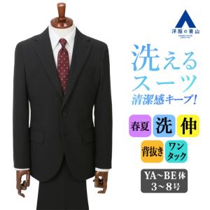 【洋服の青山】メンズスーツ 上下 セット 春夏 ブラック 黒 ストライプ 洗える ストレッチ 2ボタン センターベント 背抜き ワンタック スリム ビジネス