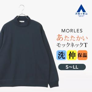 【洋服の青山】ポンチ モックネック Tシャツ 長袖 メンズ 春夏秋冬 ネイビー 紺 無地 洗える ストレッチ性 動きやすい 保温性 暖かい カジュアル 普段着 旅行