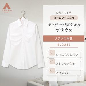 【洋服の青山】ブラウス レディース オールシーズン ホワイト 白 スキッパーカラー 長袖 形態安定 ストレッチ ウォッシャブル 洗える ギャザーブラウス オフィス