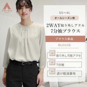 【洋服の青山】レディース フロントピンタック ブラウス 7分袖 オールシーズン シンプル 事務服 フォーマル 定番 オフィス カジュアル ベージュ