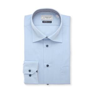 【洋服の青山】ワイシャツ メンズ スリム 春夏 秋冬 オールシーズン ブルー サックス ワイドカラー 長袖 切替生地 形態安定 シワになりにくい ビジネス オフィス