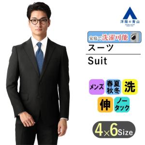【洋服の青山】スーツ メンズ スリム オールシーズン ブラック 無地 ウォッシャブル 洗える 標準体 ノータック 2ボタン メンズスーツ ビジネス MODA RITORNO