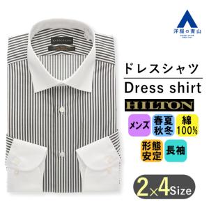 【洋服の青山】オールシーズン ブラック 黒 クレリック ワイシャツ メンズ 形態安定 長袖 綿100% ストライプ 簡単アイロン 春夏 秋冬 形態安定 シワになりにくい