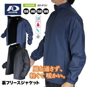 ジュニア キッズ 裏フリースジャケット アウター ウインドブレーカー シンプル スポーツ 通学 部活 あったか 防寒 起毛 軽量 子供 ブラック ネイビー