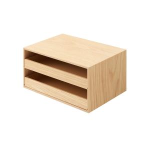 収納 木製トレー収納2段引出 約幅25.2x奥行17x高さ12.6cm