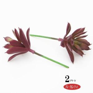 スターアエオニウム(バーガンティ)2個アソート 多肉植物ピック フェイクグリーン アレンジ 人工観葉植物 ウォールアート 造花 壁面緑化 パネル 壁掛け