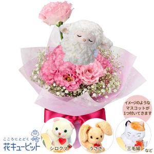 【プロポーズ】花キューピット お祝い 記念日 開店 開業 オープン トルコキキョウのマスコット付きブーケ