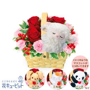 【バラ特集】花キューピット 花 プレゼント ギフト 誕生日 赤バラのマスコット付きウッドバスケット