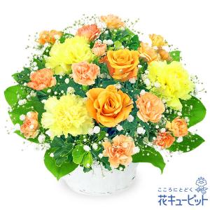 【お見舞い】花キューピット 花 ギフト プレゼント 快気祝い 10代20代30代40代50代60代 オレンジバラのアレンジメント