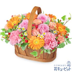 【お見舞い】花キューピット 花 ギフト プレゼント 快気祝い 10代20代30代40代50代60代 ピンクとオレンジのハーモニーバスケット