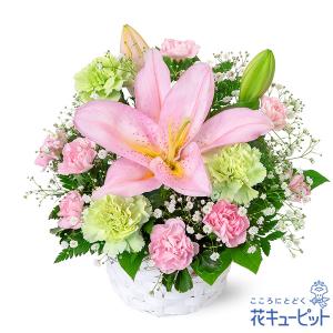 【退院祝い・快気祝い】花キューピット 花 ギフト プレゼント 退院祝い 快気祝い 10代20代30代40代50代60代 ピンクユリの華やかアレンジメント