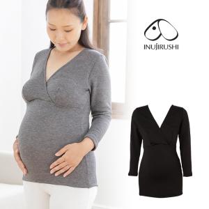 マタニティ 犬印 犬印本舗 キャミソール カシュクールオープン仕様 8分袖タイプ パット付き 裏起毛 妊婦 出産準備 産前産後