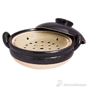 ヘルシー蒸し鍋 黒 中 (2〜4人用) レシピ・陶製すのこ(蒸し鍋)付き ( 長谷園 手作り 炊飯 ごはん おかゆ おすすめ 伊賀焼 結婚 出産 内祝い 引き出物 )