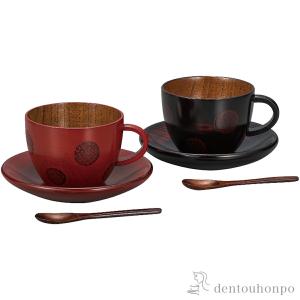 ペアコーヒーカップセット ドット布貼 根来・曙 ( 退職祝い 定年 セット ソーサー ティーカップ 美味しい おすすめ 山中漆器 結婚 出産 内祝い 引き出物 )