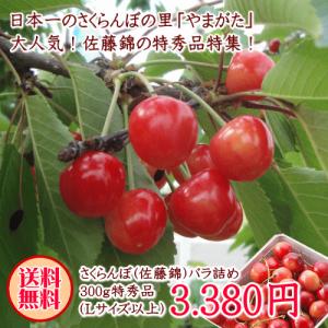 さくらんぼ 佐藤錦 バラ詰め 300g 特秀品 (Lサイズ以上)【送料無料(※沖縄県へのお届けの場合は別途送料が800円かかります)】【クール便配達】