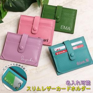 名入れ スリムレザーカードホルダー (全4色) カードケース スリム レザー 薄型 持ち運び 10枚収納 ICカード カードケース カード入れ レディース