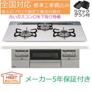 ビルトインガスコンロ 工事費込み 75cm パロマ PD-743WS-75CV 都市ガス プロパン ブリリオ BRilliO ビルトインコンロ ガスコンロ 延長保証