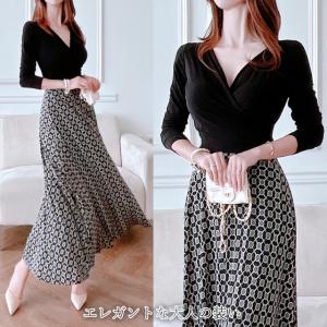 ワンピース レディース 上品 カシュクール 幾何学模様 マキシロング ウエストストラップ 長袖 30代 40代 ファッション セクシー 高級感 高品質 春秋物 新作 黒