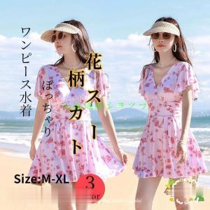 ワンピース水着 レディース 花柄 スカート 体型カバー ぽっちゃり 露出控え ハイウエスト フレア キレイ かわいい