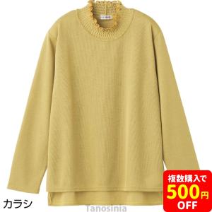 後ろ長め薄起毛シャーリング衿Tシャツ 婦人向け ブラウス シャツ 女性用 レディース 2025 秋冬シニアファッション 60代 70代 80代 90代 kz