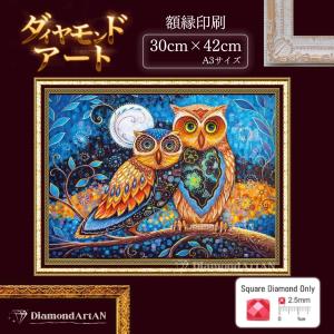 AM-342 ダイヤモンドアート キット ふくろう 風水 額縁印刷 A3 リハビリ脳トレ 集中力 知育 ビーズアート