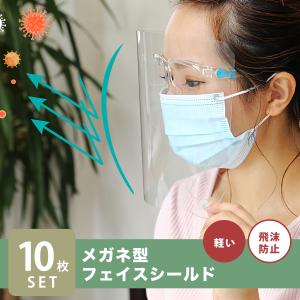 フェイスシールド メガネ 眼鏡 10枚 簡易式 飛沫防止 フェイスカバー 透明シールド 保護シールド 花粉症予防 水洗い 防塵 防護マスク フルフェイス