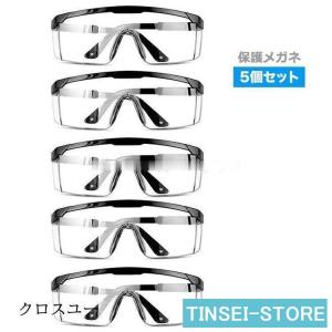 5個セット 保護メガネ ゴーグル 花粉 ウイルス対策 飛沫防止 防塵 安全 軽量 クリア 防曇 作業 実験 眼鏡 めがね 女性 男女兼用 オーバーグラス