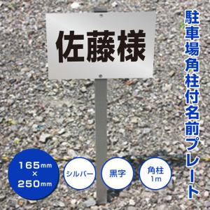 駐車場 アルミ角柱付 名前プレート シルバー H165×W250ミリ シルバーアルミ複合板/ 砂利 土 更地 埋め込み SCN-101name-sv