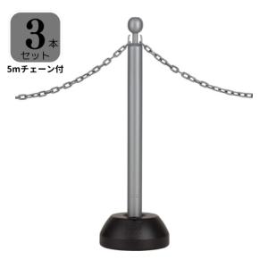 駐車場 ポール チェーンスタンド 3本組 シルバー本体 5m シルバーチェーン付 ミツギロン