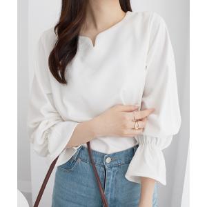 ブラウス シャツ 「再入荷決定」「裏起毛/静電気防止」キャンディースリーブハートネックブラウス レディース