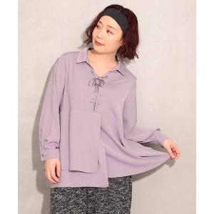 ブラウス シャツ 「L〜5L 大きいサイズ」サテンレースアップアシメブラウス レディース