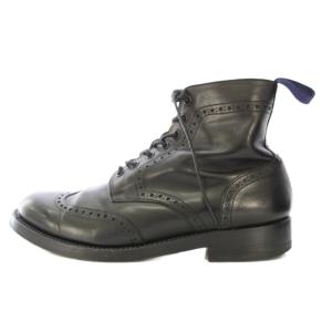 アタッチメント ATTACHMENT ウイングチップ レースアップ ショートブーツ ラウンドトゥ ローヒール レザー ワンカラー 41 黒 ブラック