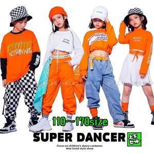 キッズダンス衣装 セットアップ 男の子 ガールズ ヒップホップ へそ出し トップス パンツ K-POP 白 オレンジ デニム