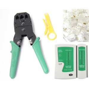 LANケーブルテスター+かしめ圧着工具+コネクタCAT5E 20個つき 使える実用セット