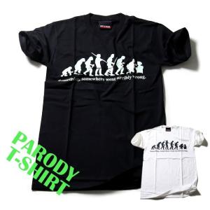 おもしろtシャツ パロディtシャツ メンズ デザインTシャツ EVOLUTION 猿から現代へ Mサイズ 黒色 白色 パロディTシャツ メンズ レディース