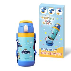 【そこまで洗えるキッズボトル】 ドウシシャ 水筒 子供 そこまで洗える3WAYキッズボトル 450ml 真空断熱 保温保冷 魔法瓶 ブルー