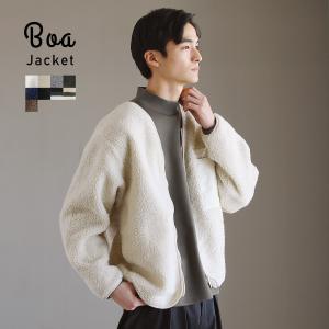 ボア ブルゾン ジャケット メンズ 秋 冬 秋服 冬服 シープボア ノーカラー ジップ サイドポケット 胸ポケット 軽量 S M L XL