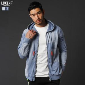 【セットアップ対応】パーカー スウェット メンズ 秋 冬 ストレッチ ウォッシュ加工 パッチワーク スポーティ ペイズリー ロゴ LUXE/R