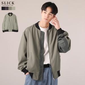 リブカラーMA-1ブルゾン ジャケット アウター メンズ 春服 秋服 リブカラー ミリタリー 軽量 カジュアル 長袖 無地