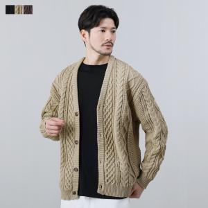 カーディガン ニットカーディガン メンズ 秋 冬 厚手 ケーブルニット アラン編み ライトアウター