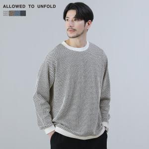 スウェット カットソー メンズ クルーネック バイカラー ジャカード スウェット ジャガード