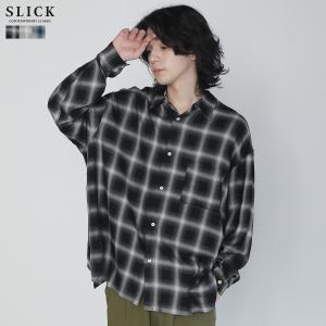 オンブレチェックレギュラーカラースリットレーヨンシャツ