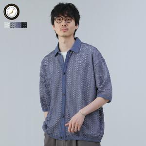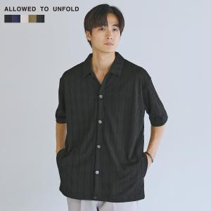 シャツ カーディガン メンズ 夏服 夏 半袖 5分袖 レギュラーカラー ケーブル ジャガード ニット ドビー ゆったり ALLOWED TO UNFOLD