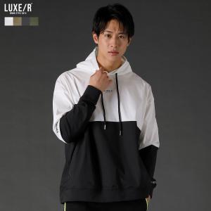 【セットアップ対応】 プルパーカー メンズ 春服 秋服 布帛 バイカラー ロゴ 長袖 ストレッチ LUXE/R ラグジュ 45585