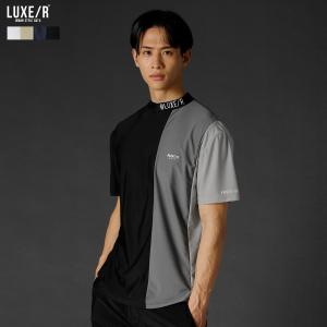 【セットアップ対応】ゴルフウェア メンズ トップス ハイネック 夏 夏服 接触冷感 吸水 伸縮 速乾 ナイロン ゴルフ 半袖 ストレッチ バイカラー 配色 45988