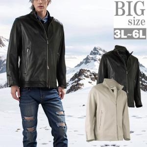 【大きいサイズ3L〜6L メンズ】本革の魅力が詰まったシープスキン羊側レザーライダースジャケットはゆったりビッグシルエット